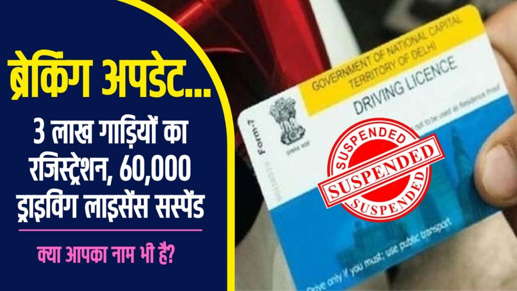 ब्रेकिंग अपडेट…3 लाख गाड़ियों का रजिस्ट्रेशन, 60,000 ड्राइविंग लाइसेंस सस्पेंड – क्या आपका नाम भी है?