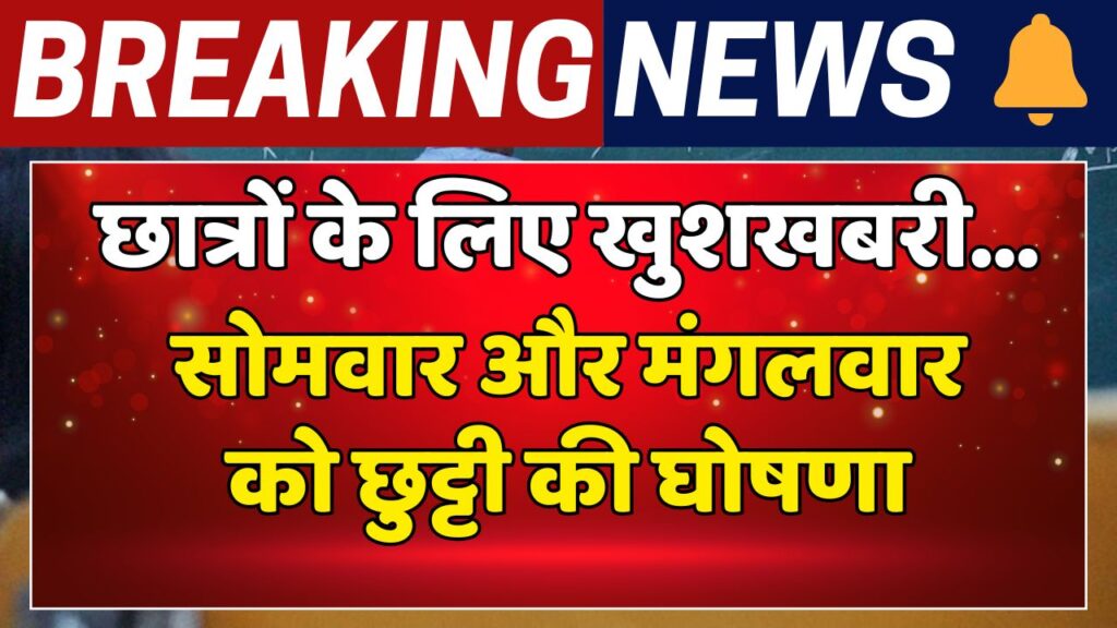 छात्रों के लिए खुशखबरी.. सोमवार और मंगलवार को छुट्टी की घोषणा