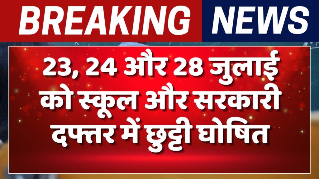 Public Holiday Alert: तमिलनाडु में जुलाई के आखिरी हफ्ते कुछ जिलों में स्कूल और सरकारी ऑफिस बंद रहेंगे। ये छुट्टियां धार्मिक और ऐतिहासिक महत्व वाले खास मौकों पर घोषित की गई हैं। राज्य सरकार ने स्पष्ट किया है कि इन छुट्टियों के कारण पढ़ाई या सरकारी कार्यों में कोई रुकावट न आए, इसके लिए कुछ … Continue reading Public Holiday Alert: इस राज्य में 23, 24 और 28 जुलाई को स्कूल और सरकारी दफ्तर में छुट्टी घोषित – जानें वजह