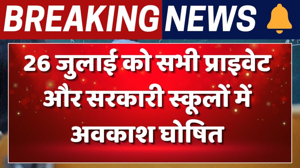 Schools closed: 26 जुलाई को सभी प्राइवेट और सरकारी स्कूलों में अवकाश घोषित, आदेश जारी